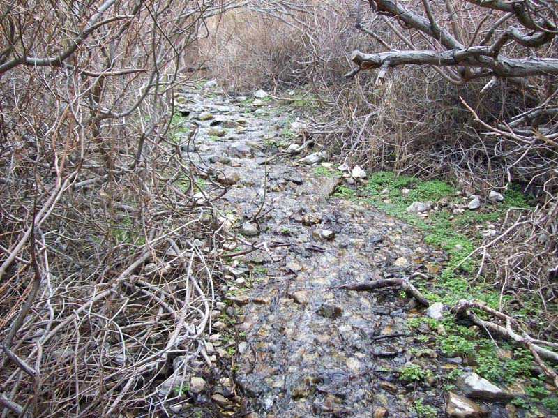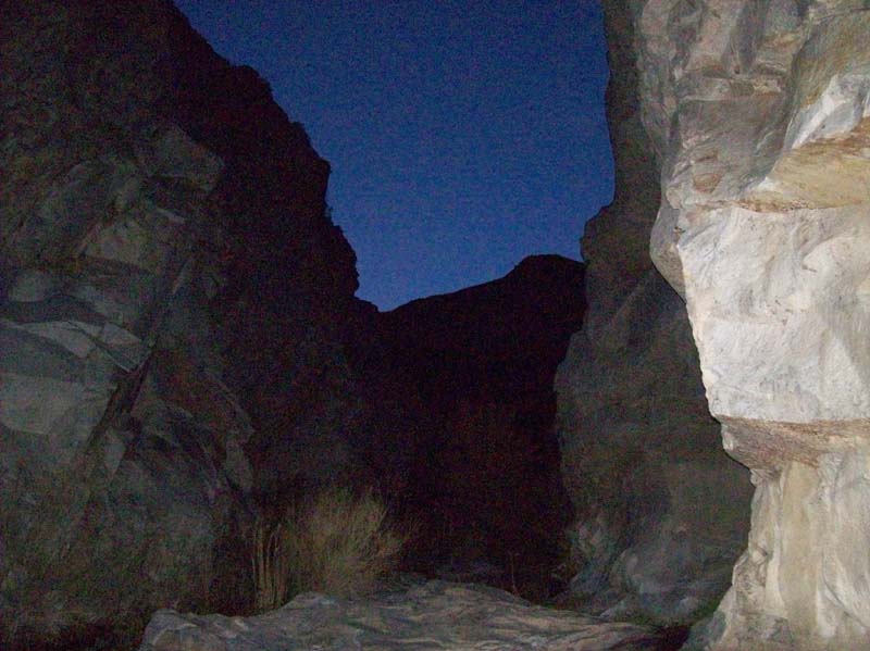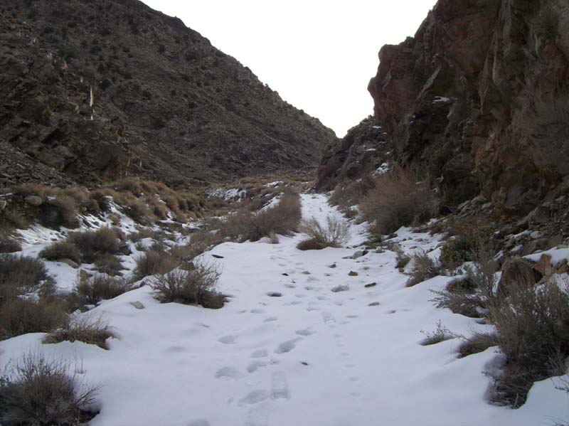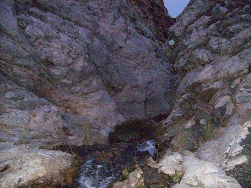 | Surprise Canyon was narrow in the beginning, and I had to scramble over rocks and through the stream. |