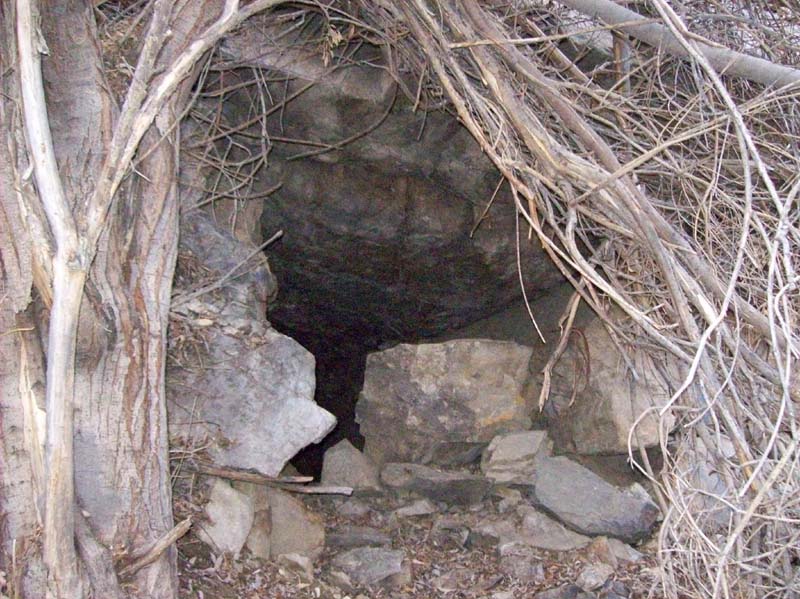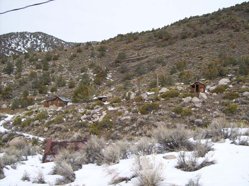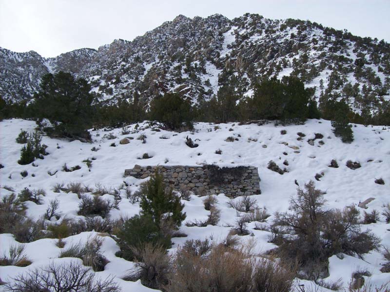 | All along the way there were signs of the old mining days. I think this was an old cabin with all the wood for the roof long gone. |
